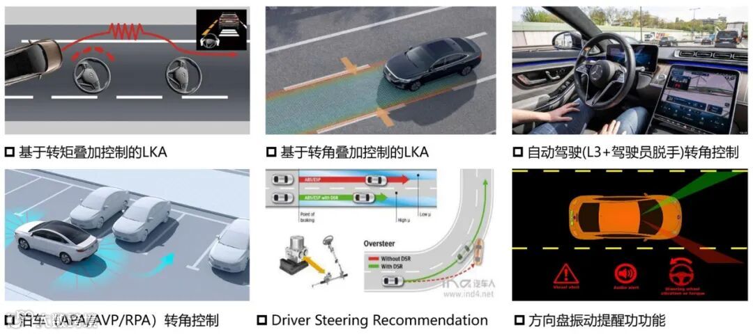 DSR功能:该功能用于转向与制动系统的协调控制场景。当ESC检测到抱死或侧滑即将发生时,通知EPS施加一个力帮助驾驶员进行转向操作,可以有效的降低刹车距离、防止或减弱甩尾现象。 -