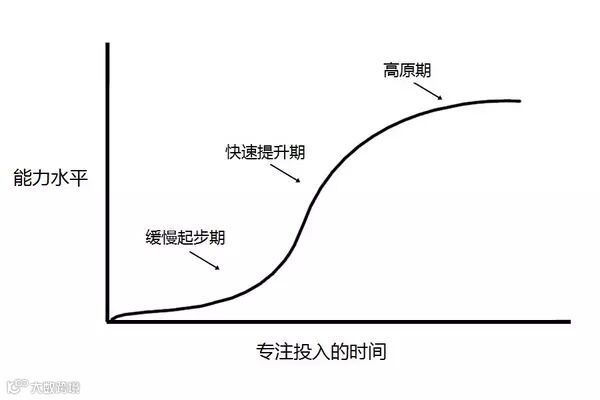 很多人曾写信告诉我,他们有很多爱好,什么都会尝试一下,但都不精通,到了最后不知道选择哪个作为他们的职业道路,甚至最后找工作也成了麻烦。其实道理很简单,每个人的精力是有限的,如果你不专注,就很可能永远在「缓慢起步期」徘徊,从 A 领域的缓慢起步期跳到 B 领域的缓慢起步期,再到 C、D……但就是到不了快速提升期,更到不了高原期。