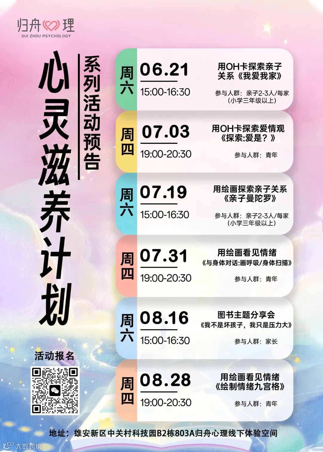 名额有限,期待与您在七月的归舟活动中再次相遇,共同书写更多心灵成长的美好故事!