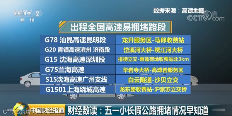 预计5月1日出程,全国高速易拥堵路段为G78 汕昆高速昆明段,其次是 G20 青银高速滨州、济南段,以及 G15 沈海高速深圳段。