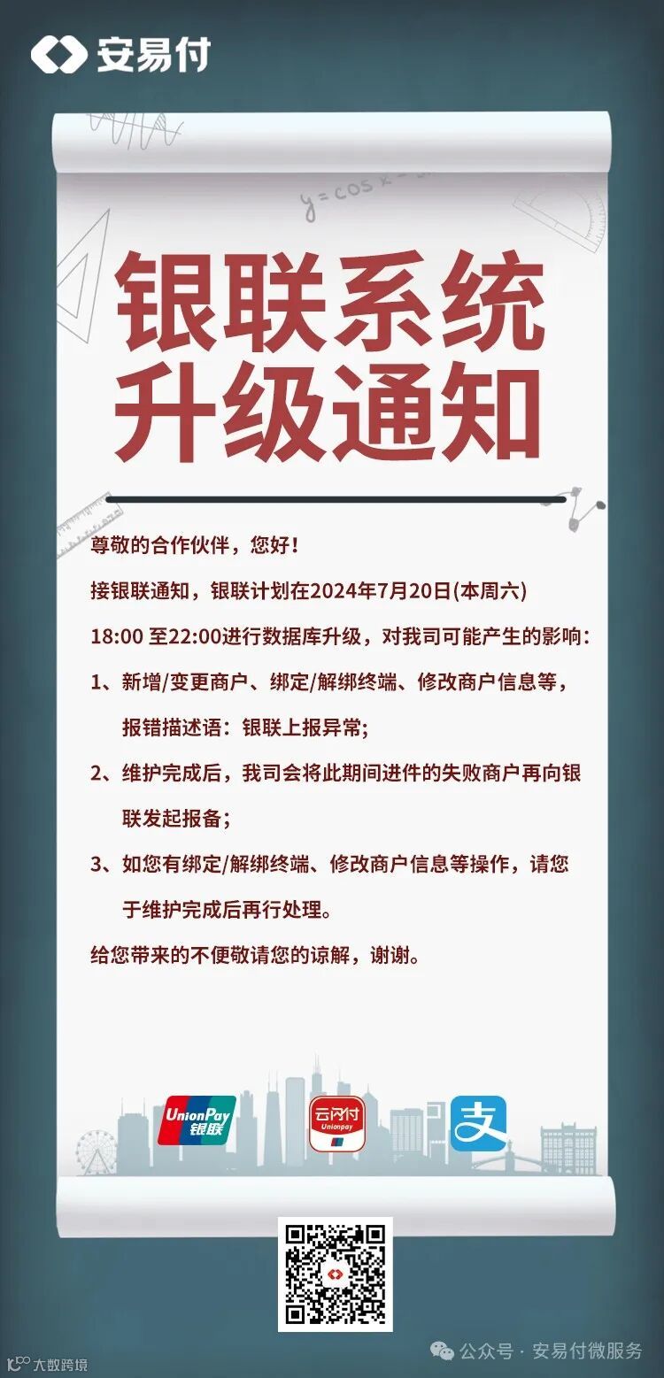 银联系统升级通知