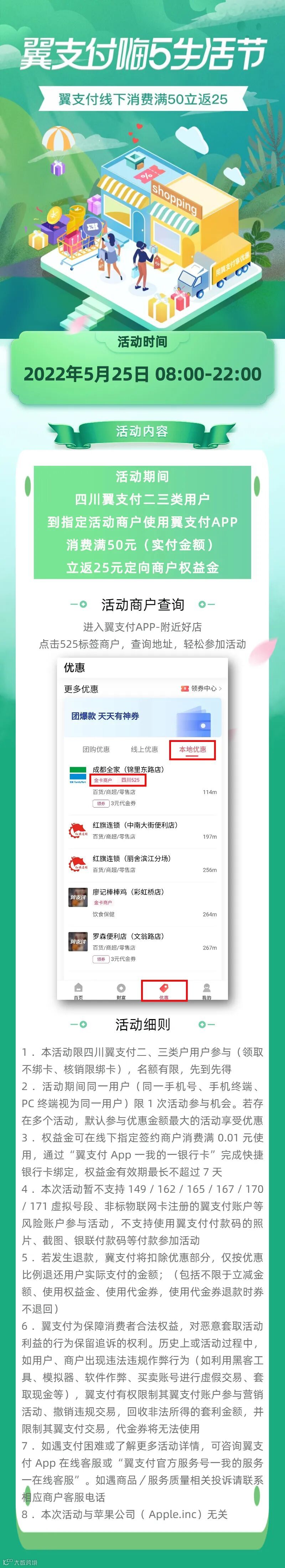 翼支付线下消费满50立返25