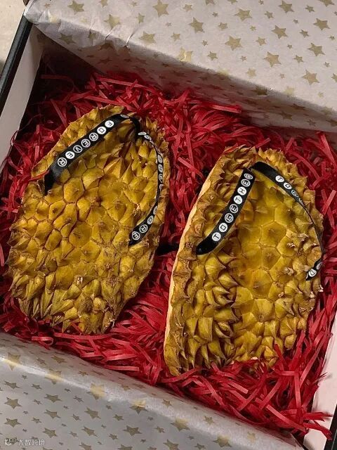 特意为我的男孩定制了一双榴莲拖鞋,他看到都哭啦!