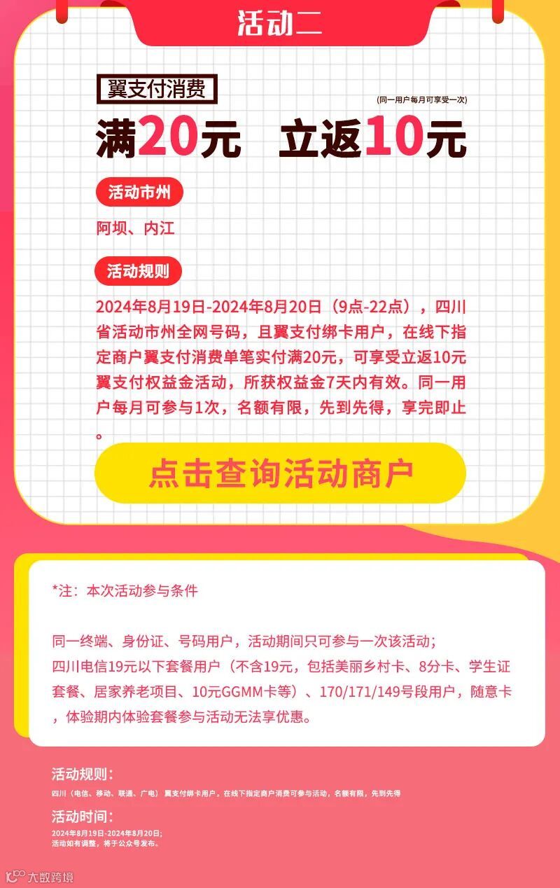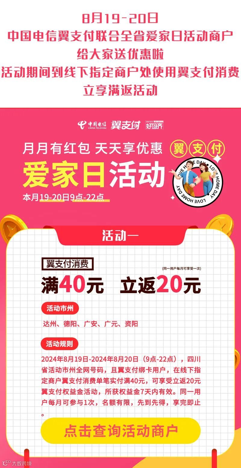 8月翼支付消费立返等你来