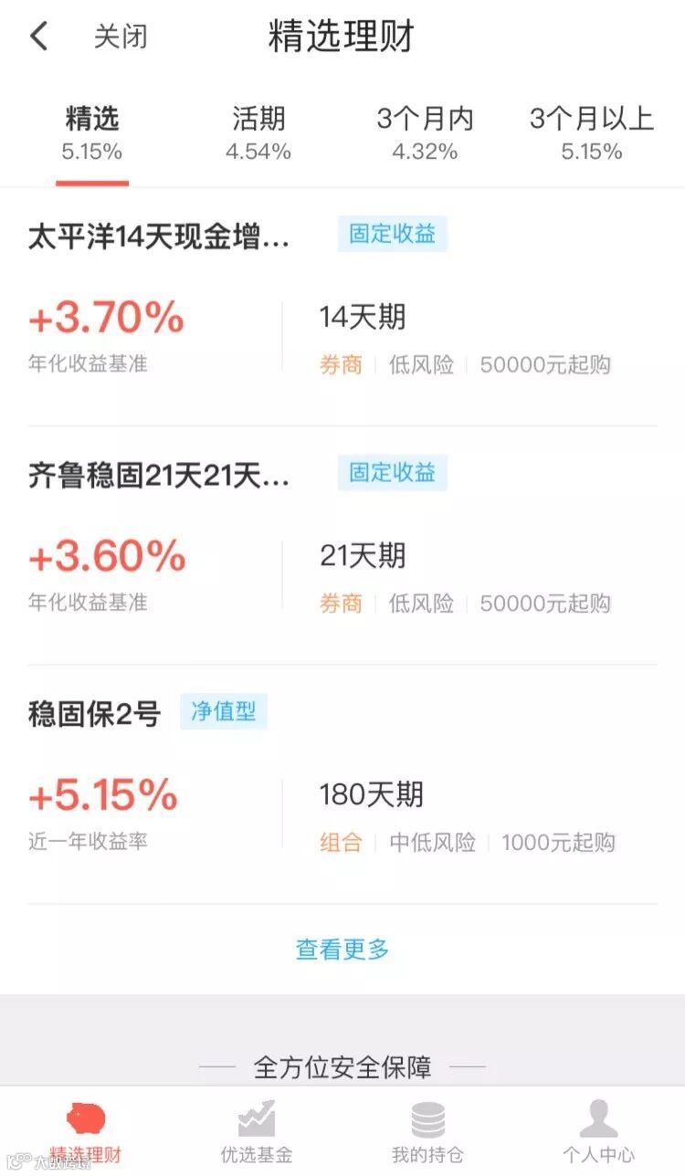 精选专区,5%+收益产品
