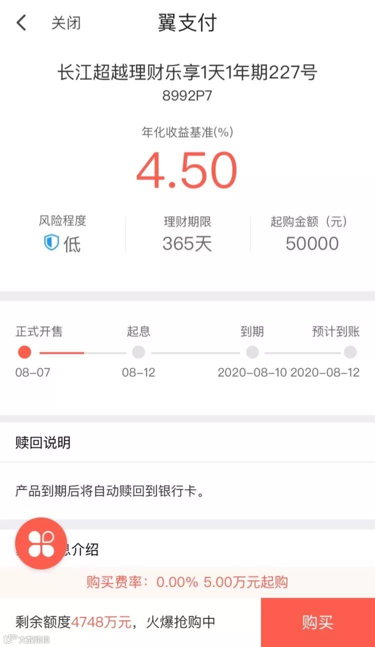 风险低,购买0费率