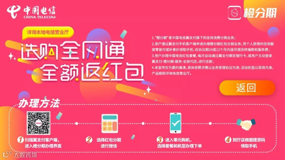 1、用户通过【翼支付手机客户端】申请办理橙分期红包分期业务,凭个人获得的信用额度零首付或补差价领取手机,在协议期24或12个月内逐月偿还终端款和服务费;