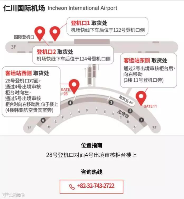 1)仁川机场T1:东侧和西侧取货点