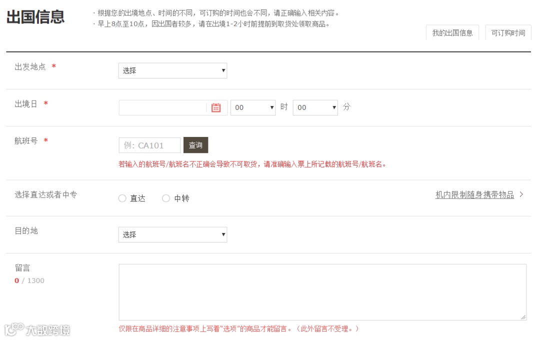 5. 护照编号,英文姓名等出境信息有误时不允许取货
