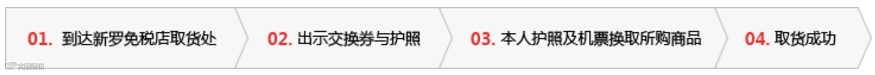 1. 出境当日前往指定取货处出示交换券、本人护照、机票便可领取所购物品