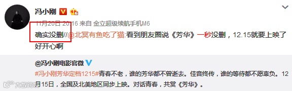 并且,面对网友的质疑,冯导亲自出面表明《芳华》一秒没删,这无疑给期待该片的观众们吃了一颗定心丸。