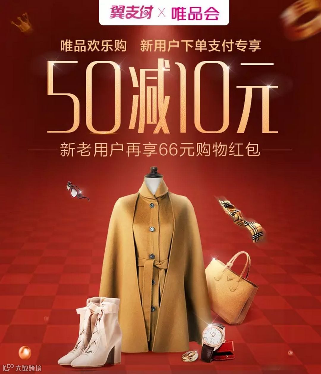 10月8日-10月31日,每日早上十点开始,在翼支付-唯品会商城下单的唯品会新用户,可享满50减10元订单优惠。