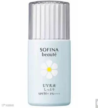 干性肌肤的妹子可以尝试比较滋润的欧美系化学防晒,下面的产品相信大家都无比熟悉”苏菲娜小蓝花滋润型”,它是小编的爱宠,干皮及混干亲妈,总之,小蓝花我耐你。