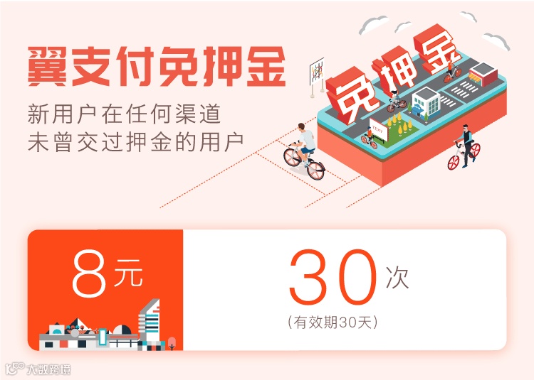 (1)活动期间(2018.7.1至2018.12.31),翼支付用户在翼支付-摩拜单车扫码骑行,参与新用户免押骑行活动,即可获得摩拜免押金权益;