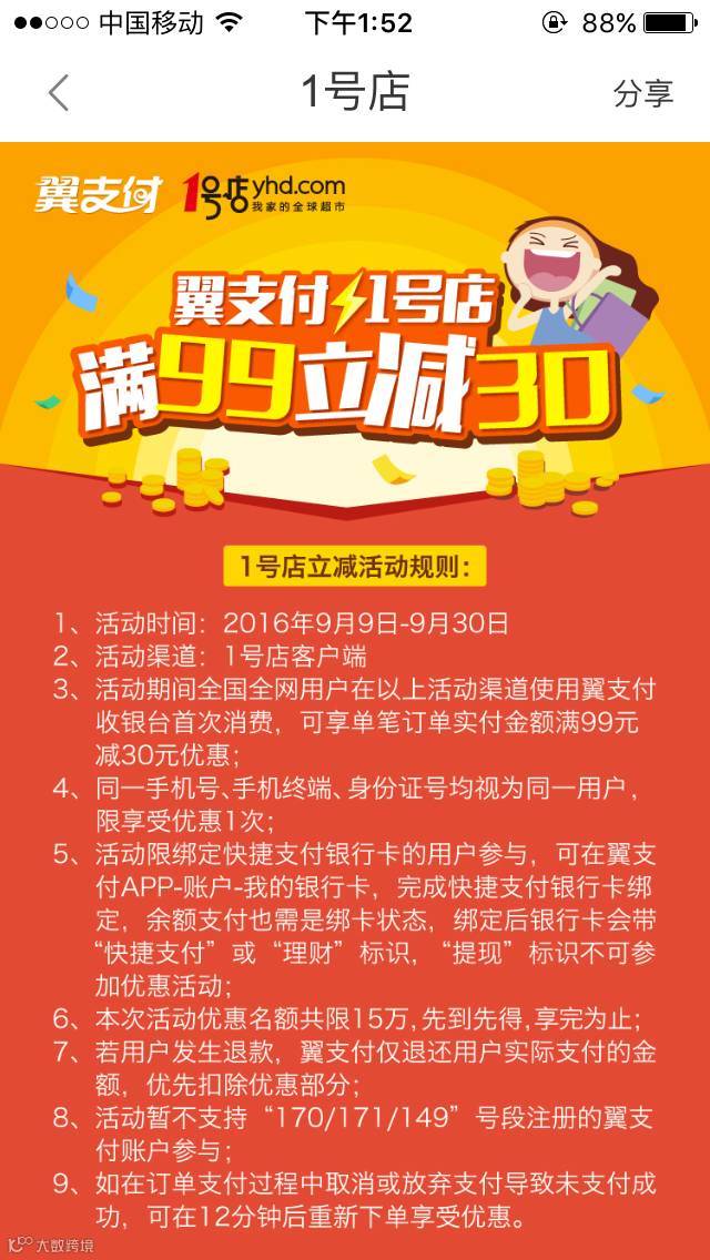 1号店还有30元!