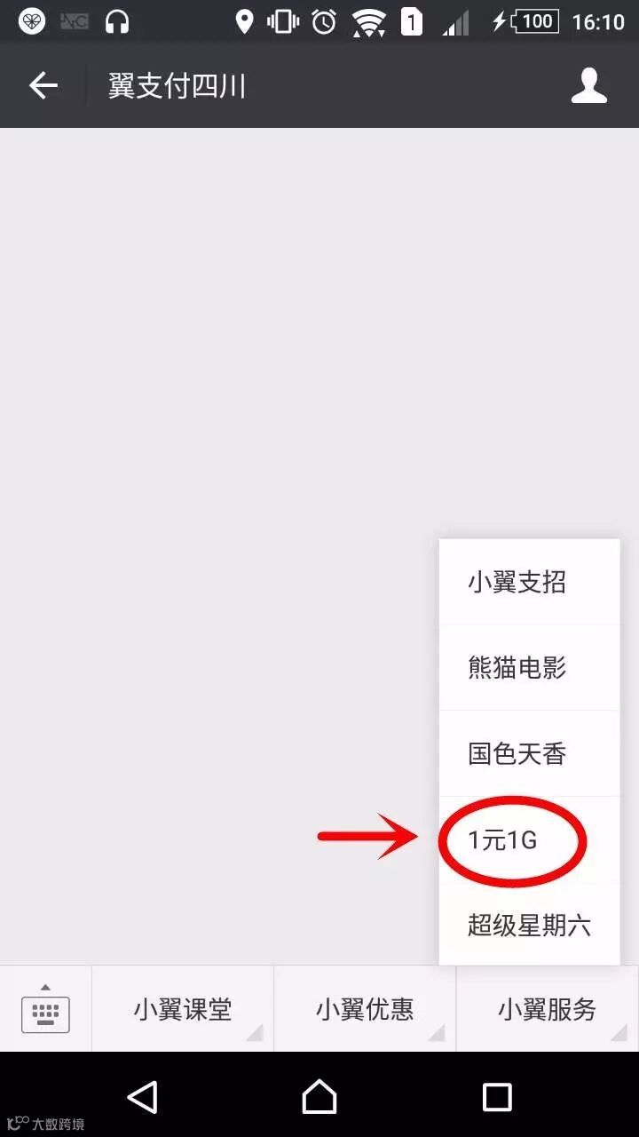 或返回首页点击菜单栏【小翼服务】“1元1G”