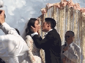 看到女神在婚礼现场落下了感动的泪水