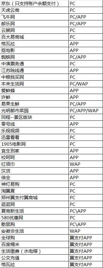 翼支付APP:指仅限通过翼支付手机客户端进入