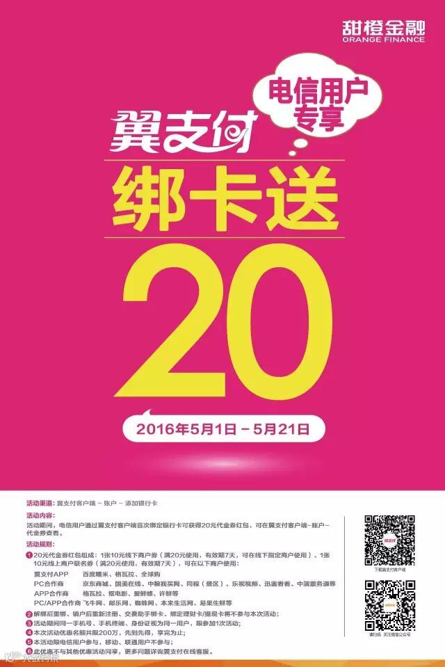 1.解绑后重绑、销户后重新注册、交费助手绑卡、绑定理财卡/提现卡、 同一身份证注册的翼支付账号已绑定银行卡,将不参与本次活动;