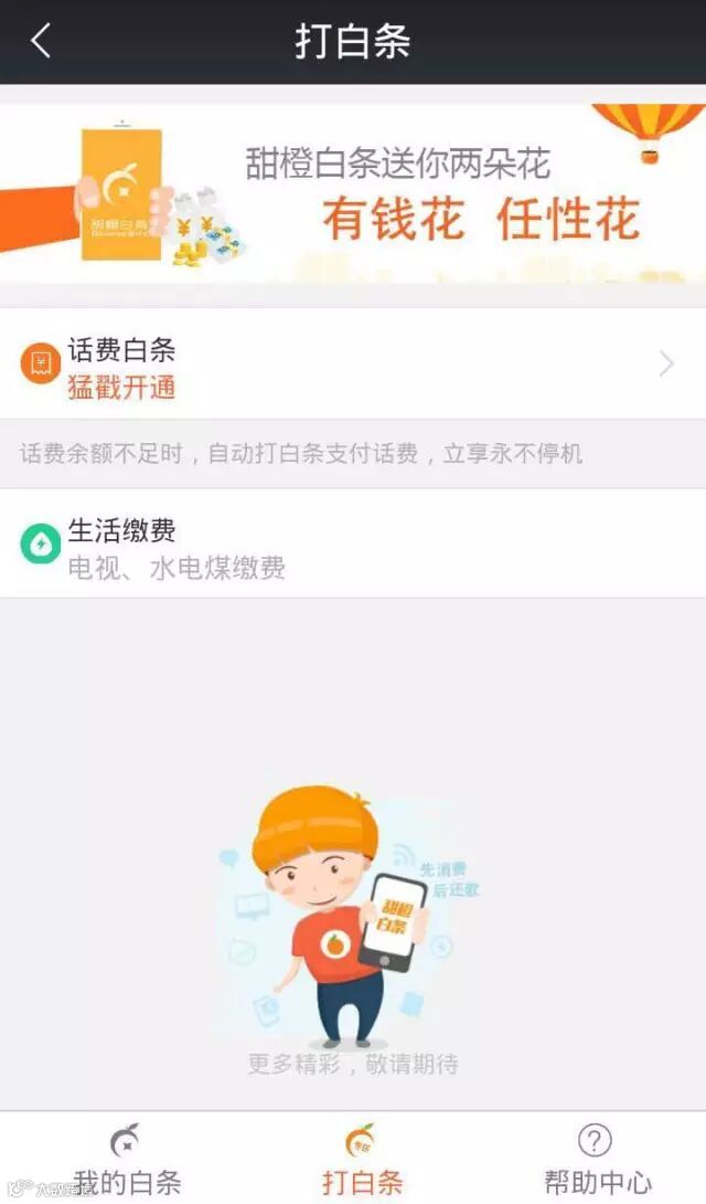 翼支付APP应用大厅——甜橙白条——话费白条