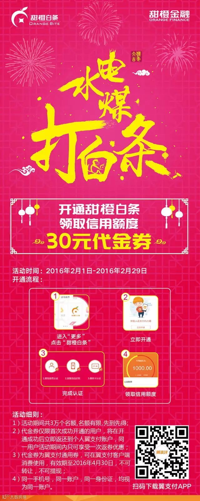 送翼支付30元代金券