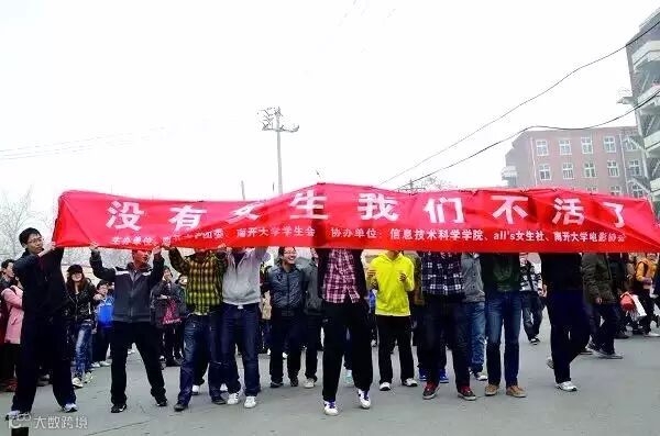 大学校园被女生节表白的横幅所占领