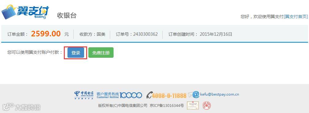 选择“翼支付”支付方式
