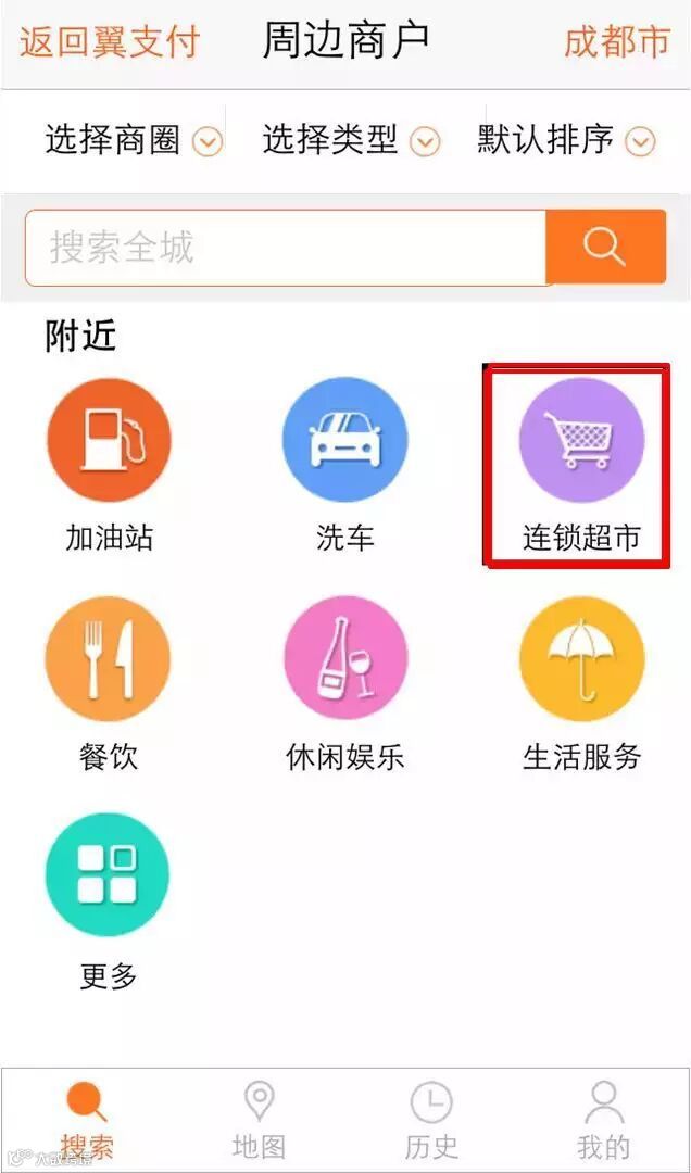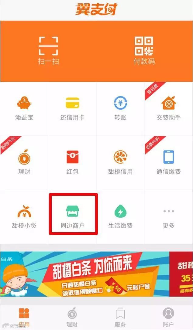 Step1:打开翼支付客户端,进入周边商户