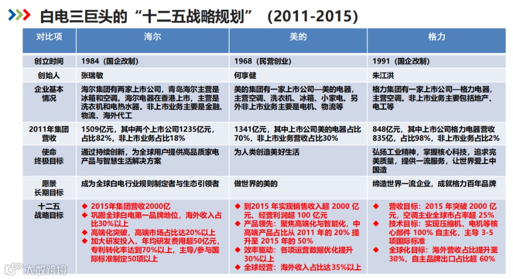从格力、美的、海尔三家的业务设计选择,看三家企业的十年发展变化。