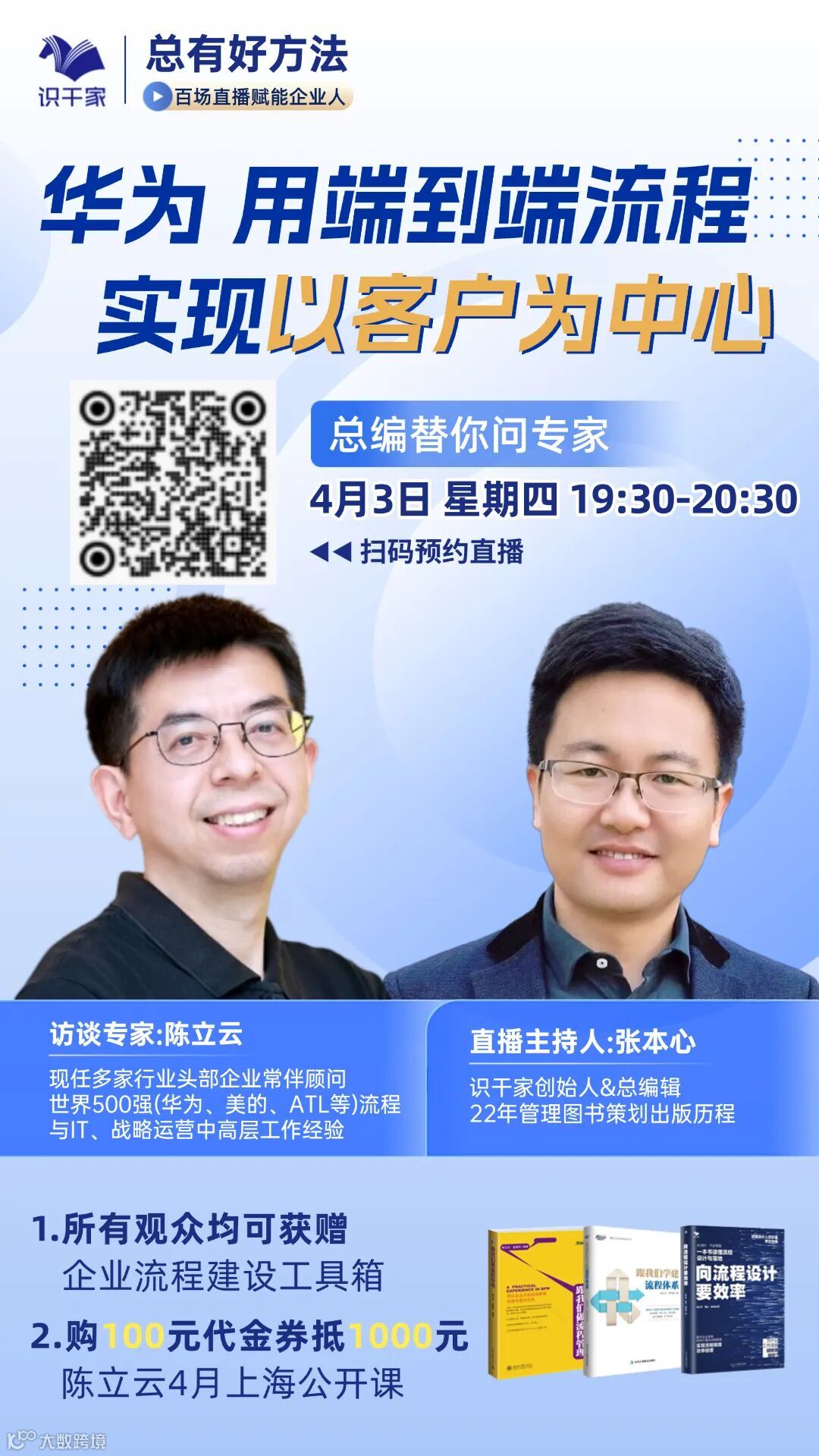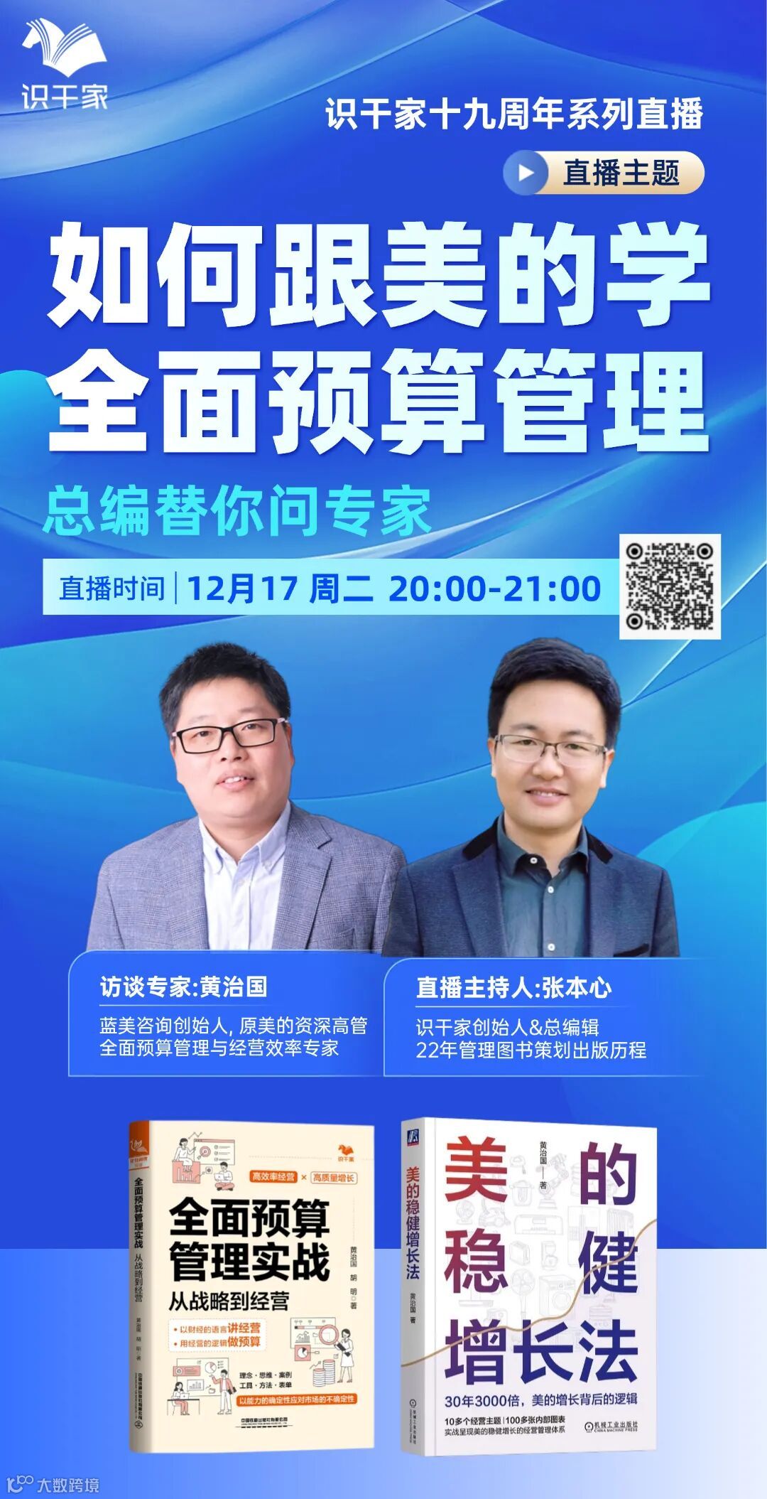 你工作中关心的问题就是识干家直播间的主题。工作日晚上19:30以及周六日,识干家总编张本心邀请专家作者,在直播间分享他们最鲜活的行业洞察和专业知识,帮你快速领悟核心要点。