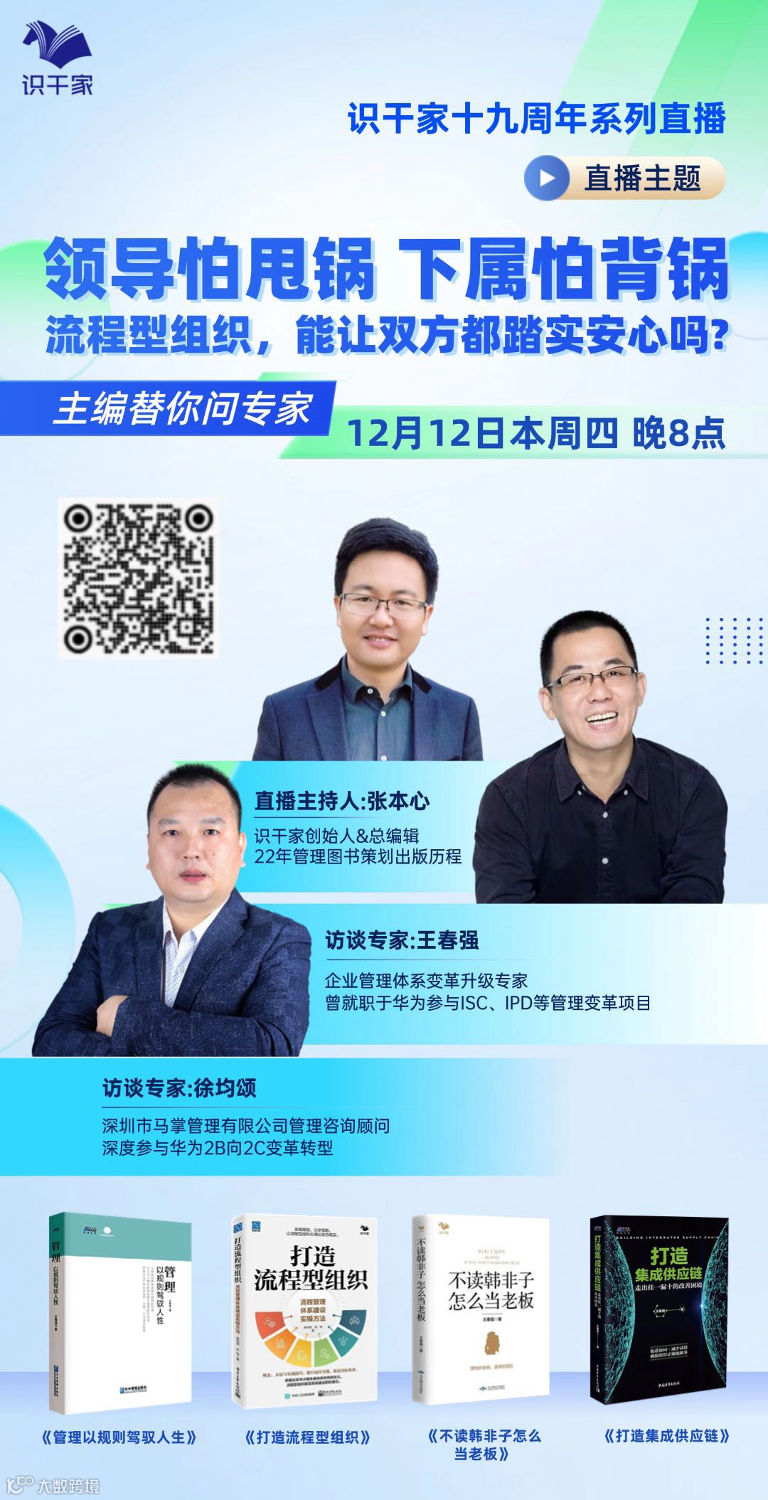 任意一个流程必有人物角色、活动和活动之间的依赖关系。人物角色是组织的分工结果,分工方式若不同,角色便不同,于是流程便也不同,所以分工也是流程的构成要素。为追求流程最优,改变分工也是理所当然的手段之一。所以,组织分工不应被独立对待,也不应先固定分工再去求流程最优。现实中,人们总是习惯先固定组织分工,而后去求最优流程,这样做局限甚大、思路甚窄。所以,要从观念上先破了这个思维惯性与路径依赖。《坛经》中六祖惠能讲“定慧”时说,定慧一体,不是二,不是先定后慧,也不是先慧后定。王阳明讲“格物致知、诚意正心”时也说,不是先格物、再致知、再诚意、再正心,四者本是一个过程,格物时即是致知时,即是诚意时,即是正心时。两位先圣“一体不二”的思维方式,也适用于我们看待组织分工与流程的关系。其实,分工的过程和流程优化的过程是一个过程,既不是先分工后流程优化,也不是先流程优化后分工,二者是一体。