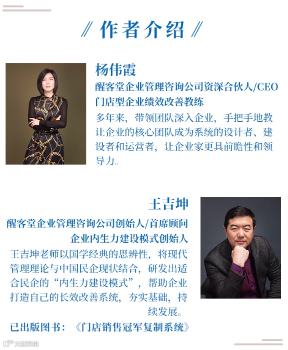 醒客堂企业管理咨询公司资深合伙人/CEO门店型企业绩效改善教练多年来,带领团队深入企业,手把手地教让企业的核心团队成为系统的设计者、建设者和运营者,让企业家更具前瞻性和领导力。