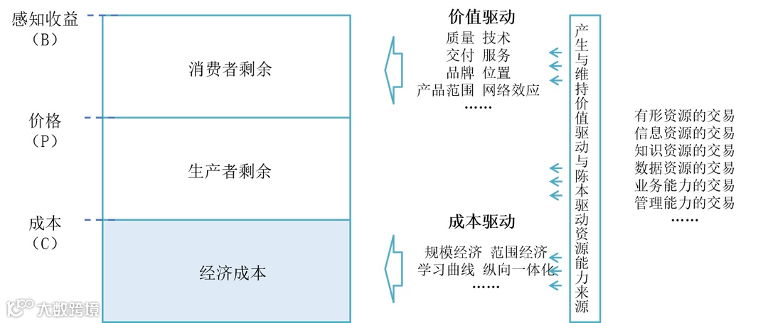 ②战略创新,在增加消费者感知收益的情况下(例如手机增加双摄拍摄、AI智能),进一步降低成本,企业也获得了更大的收益(消费者剩余、生产者剩余都增加)。