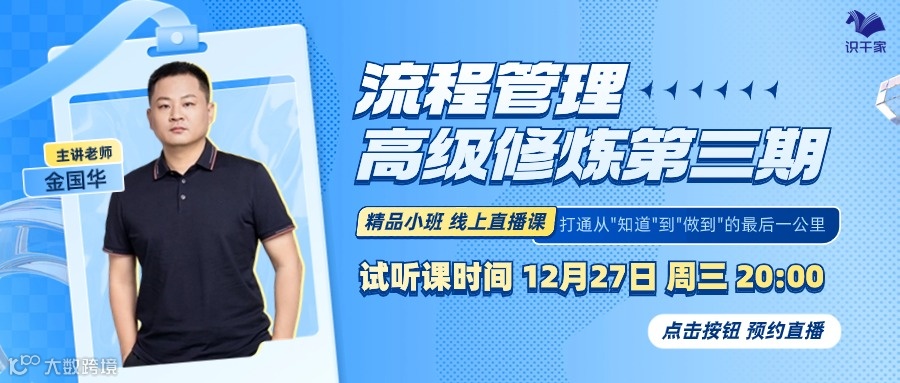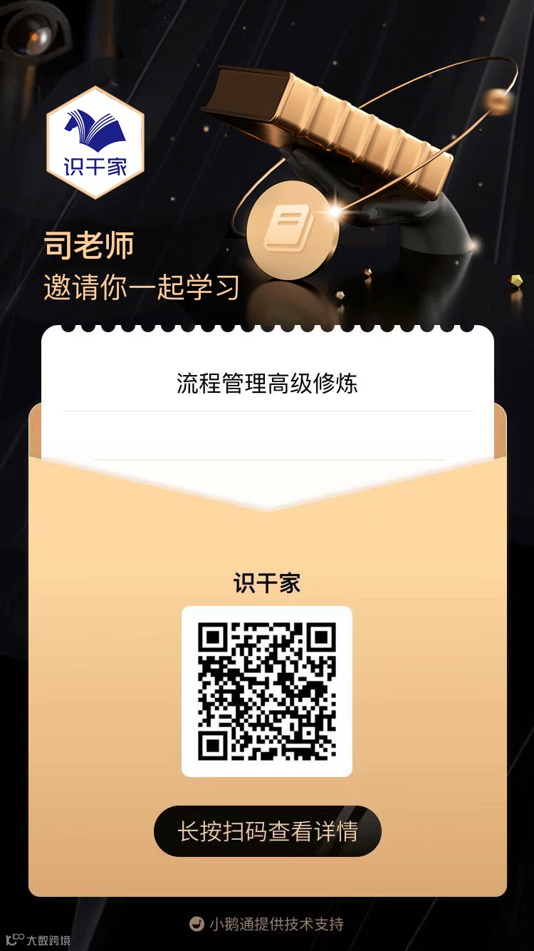 《流程优化项目操盘实战案例解析直播课》,这是一个百万级流程变革项目的全案记录。这是一个非常成功的项目,也是我 10多年来一直想整理分享的项目。这个项目实现了难得可贵的几点,同时也是很多企业推进流程优化工作的难点: