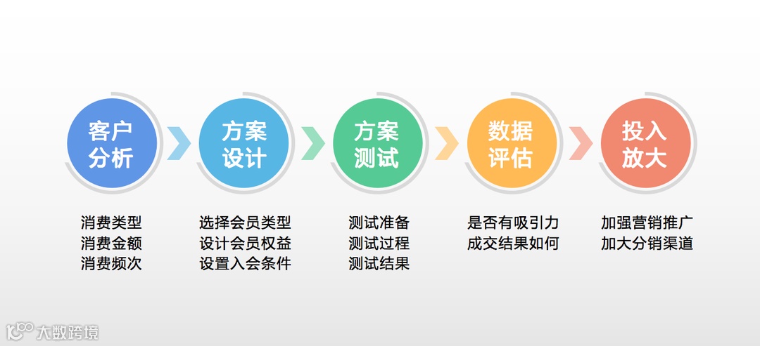 好的,总结一下,客户分析——方案设计——测试执行——效果评估——推广放大,这五个步骤就是我们设计一个会员制的完整流程。