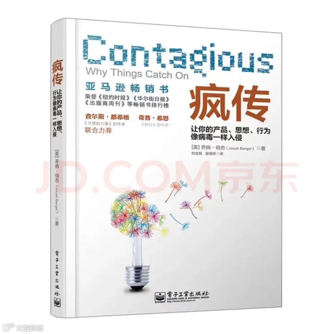 《疯传》这本书实际上就是在分析这样流行性事件或者产品背后的原因,作者乔纳 · 伯杰是宾夕法尼亚大学沃顿商学院市场营销学教授,在学校开设疯传课程,专门研究疯传现象和案例,最终总结出STEPPS六大原理,带大家了解疯传现象背后的共同逻辑,涉及心理学和社会学的知识,让你了解为什么某些事物会流行。