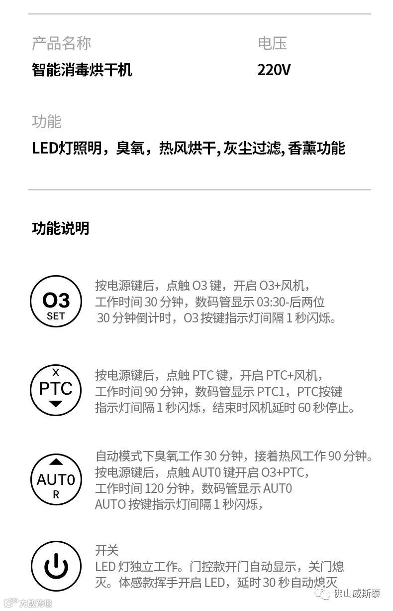 功能输出:O3 臭氧消毒,