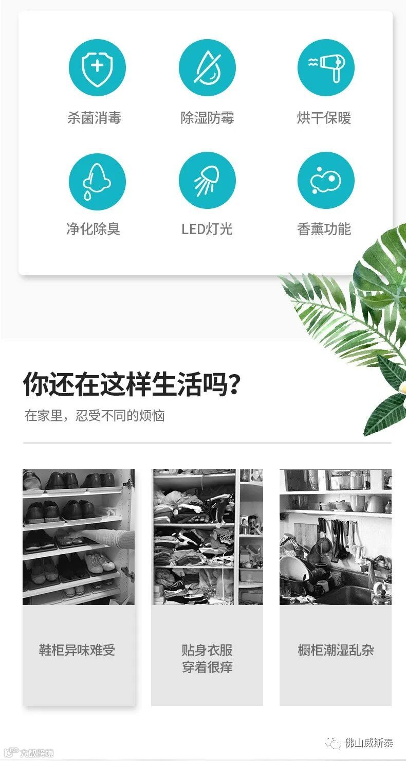 适用范围:衣柜、鞋柜、橱柜、储物柜照明消毒防潮香薰芬芳。