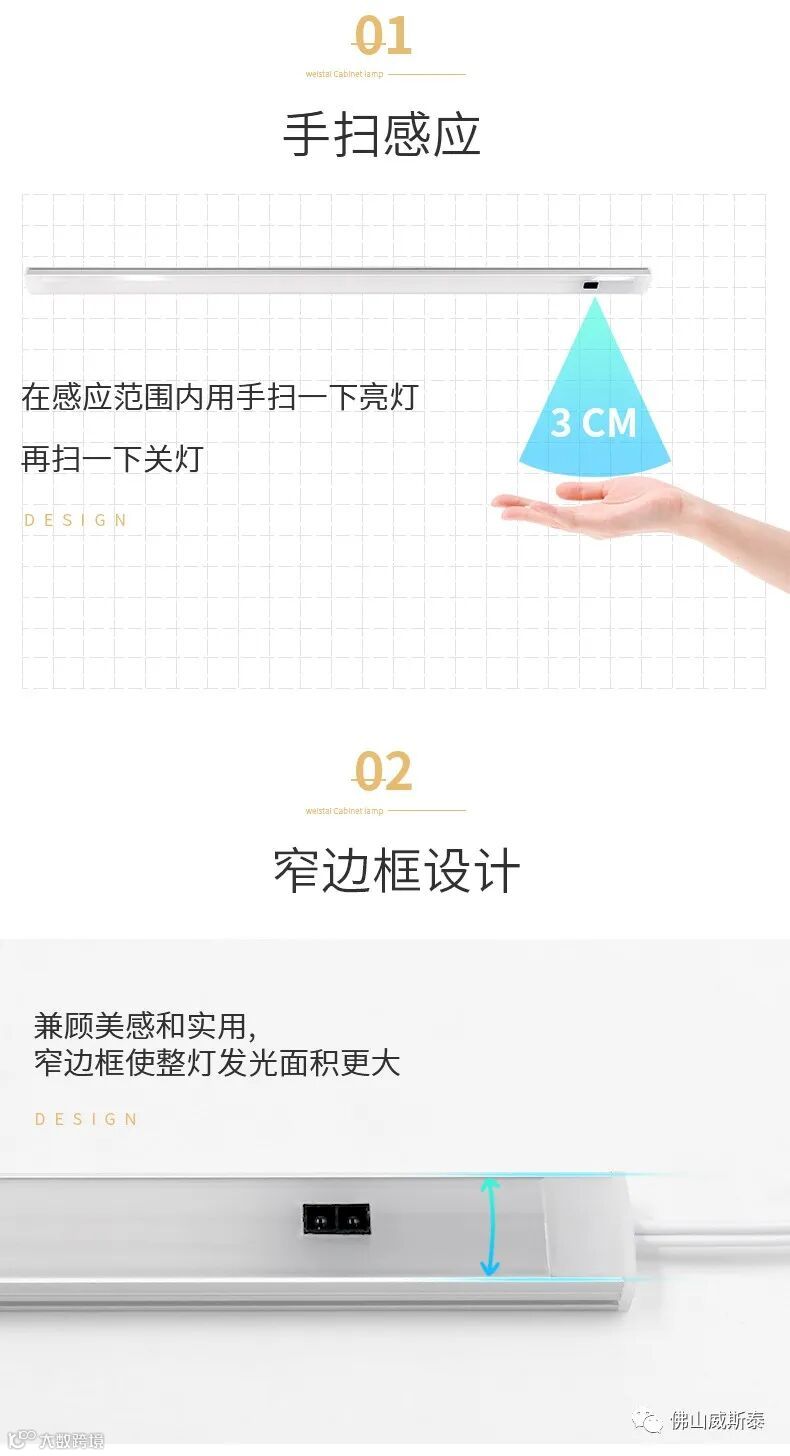 7.手扫感应:感应距离小于5cm, 轻轻的扫过,亮灯,再横扫一次,灭灯