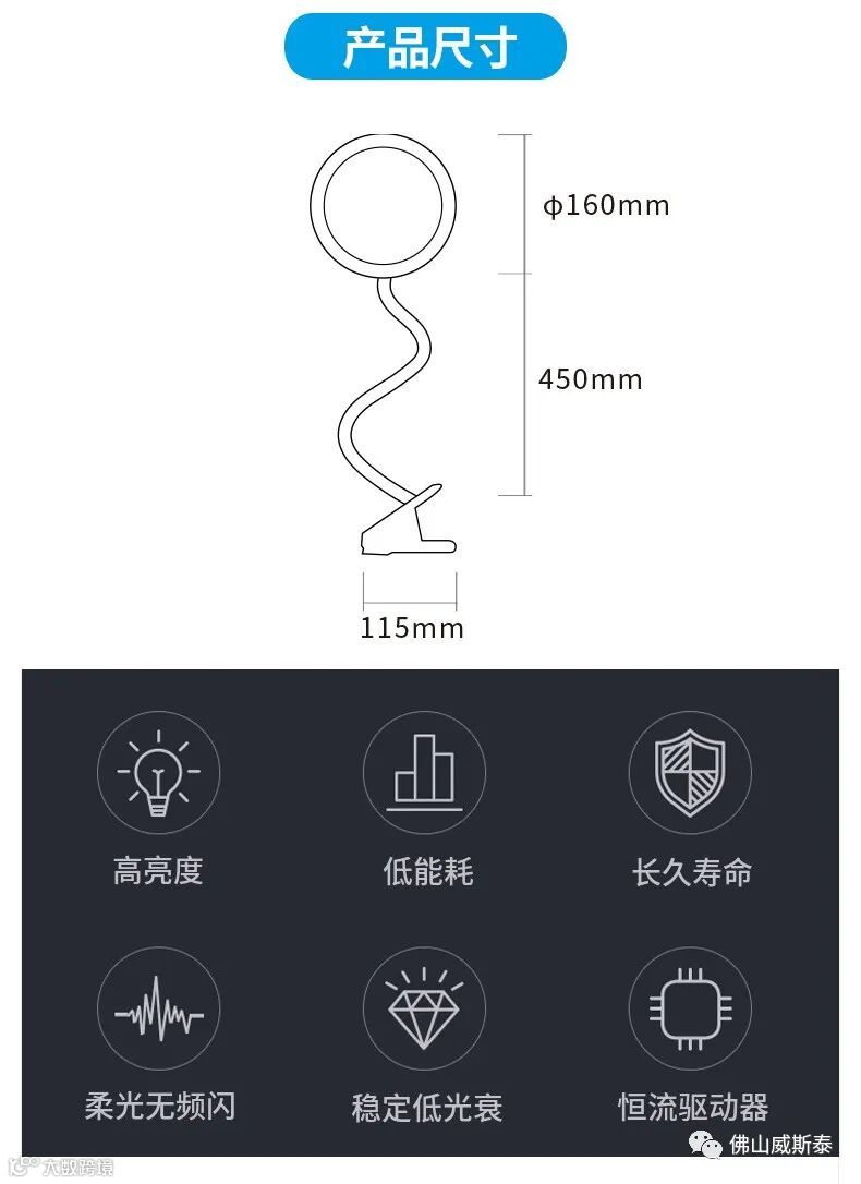 环形灯光,不刺眼,多方位照明
