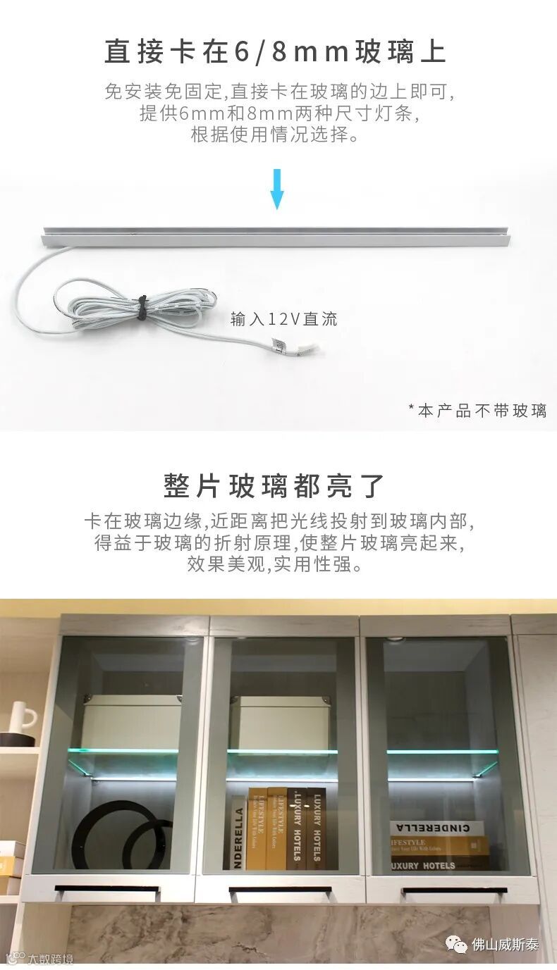 导读:型号:WST-1817-05产品名称:卡6-8mm玻璃层板灯特点;安装便捷,光线柔和,发光均匀灯光颜色:暖白