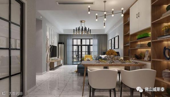 最后这种案例设计的非常新颖独特,很是值得借鉴学习,原木色的餐边柜与窗户很好的结合在一起,显得非常精致,两边的隔板柜能够当做酒柜使用。下面还有着丰富的储物格设计,能够将餐厅的物品分门别类的收纳起来。