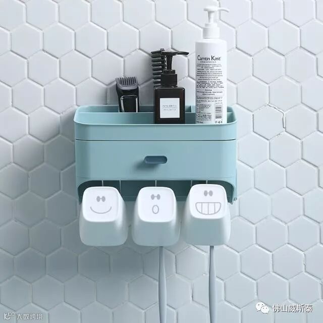 牙刷杯子壁挂,让卫生间台面清洁更省力,个人比较喜欢下面这个吸壁式牙刷置物架,自带笑脸杯,使用更方便。