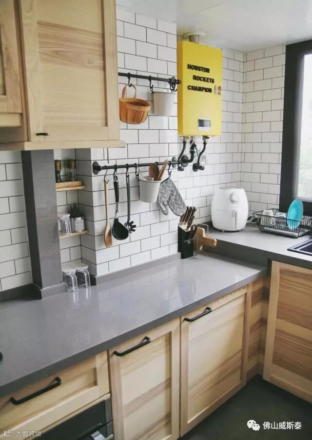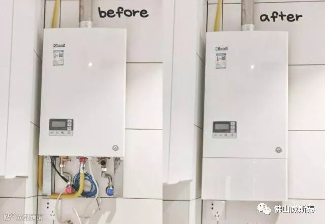 热水器线路裸露不好看,影响厨房的整体美观,定制不锈钢进行遮盖即可,通过3M胶固定,不过注意的是底部无需密封,保证热水器线路不会处于密封高温状态。