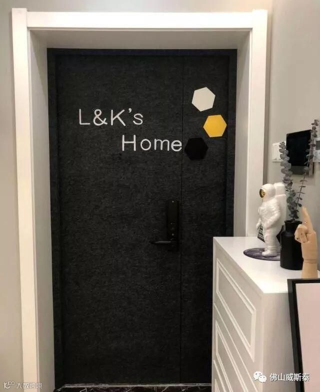 解决办法是定制毛毡,毛毡背面自带背胶,根据自家门的尺寸定制后粘贴在门上就好了,还可以通过字母等进行创意DIY,打造家里专属的入户门。