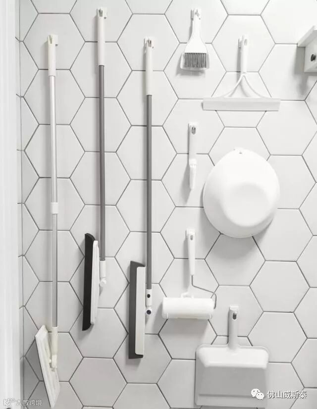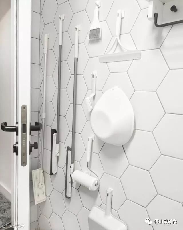 给家里节省出一个储物柜的空间,同时壁挂的清洁工具尽量选择白色,视觉效果更好。