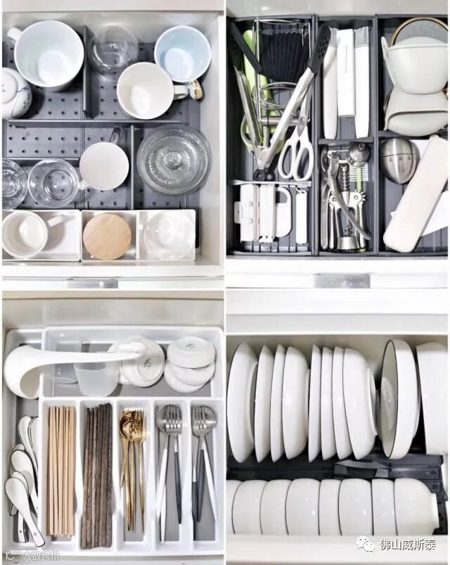 无论是厨房还是家里的其他收纳,用抽屉内分隔收纳盒绝对是一劳永逸的收纳方式,打开抽屉一目了然井井有条,绝对能提升家居品质。