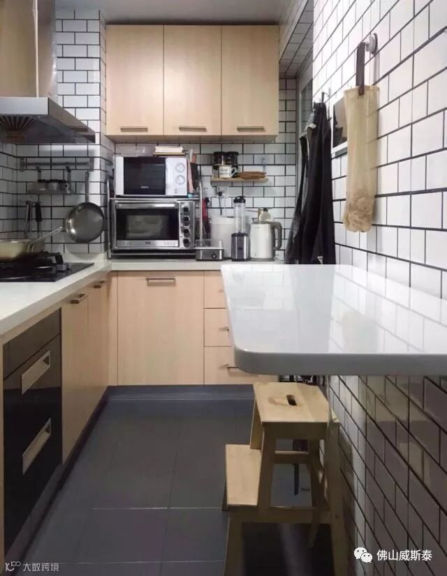 厨房装个可折叠的传菜台,烧好的菜放在这里,让家人帮忙传菜,增加了厨房的灵活性,还可以用来摘菜或者做临时收纳,不用时收起,很方便。