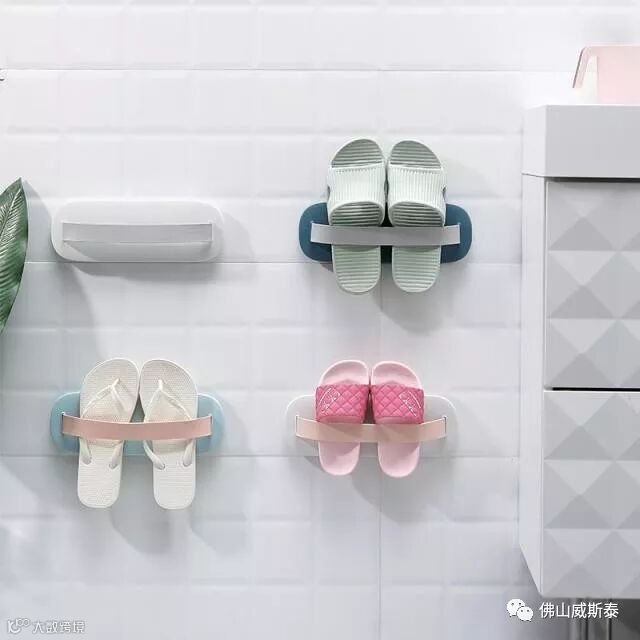 浴室拖鞋沥水架也是提高家居品质的重要细节之一,一方面是避免掉每次洗澡去找凉鞋拖,另一方面拖鞋壁挂沥水,地面不凌乱还能及时干燥。