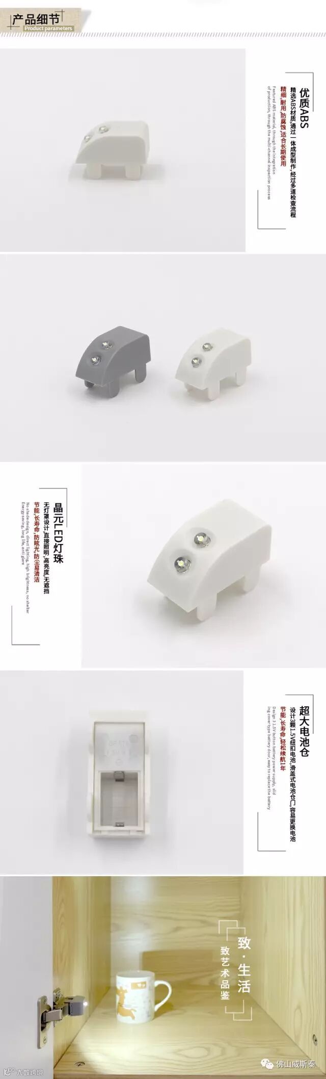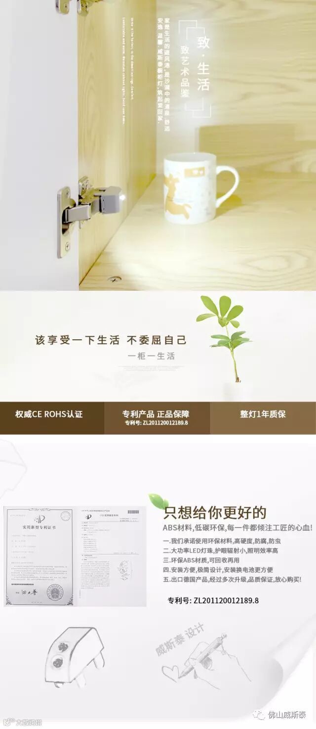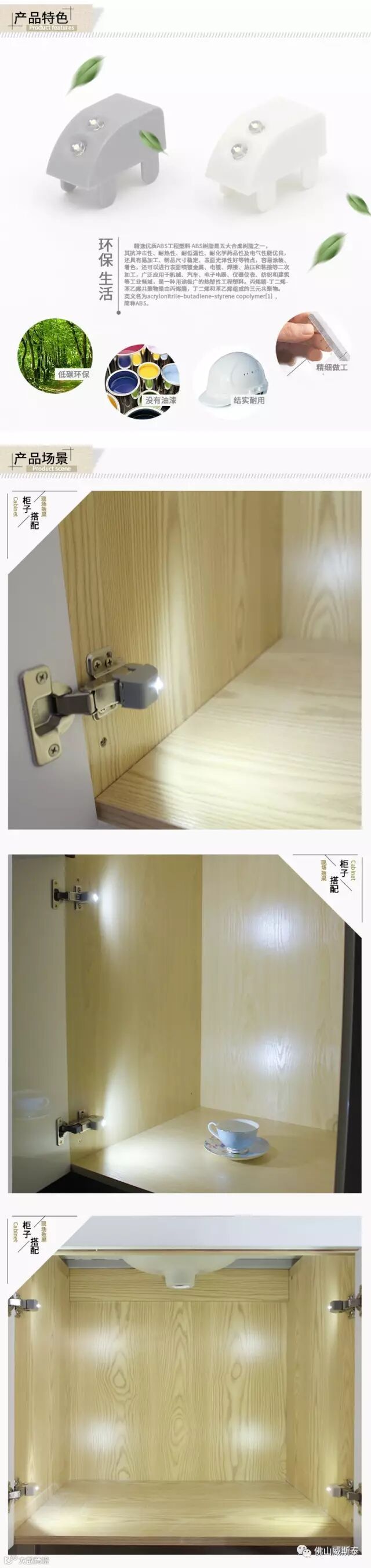 用途:用于衣柜内照明:家居场所 衣柜门 橱柜门 衣帽间门 组合柜门 定制衣柜展厅 酒店客房 宾馆 别墅 主人房 老人房 小孩房 卧室 休闲娱乐场所等门铰链